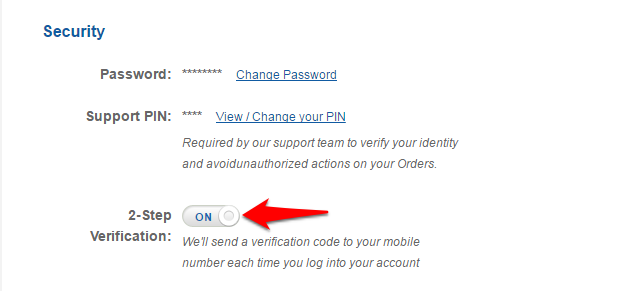 Click on the On/Off toggle next to 2-Step Verification to start the process.